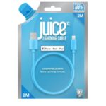 JUICE Apple iPhone 11, Pro, iPhone X, Xr, iPhone 8, 7, 6, SE, iPad Lightning, Charge & Sync Cable, 2m, Aqua